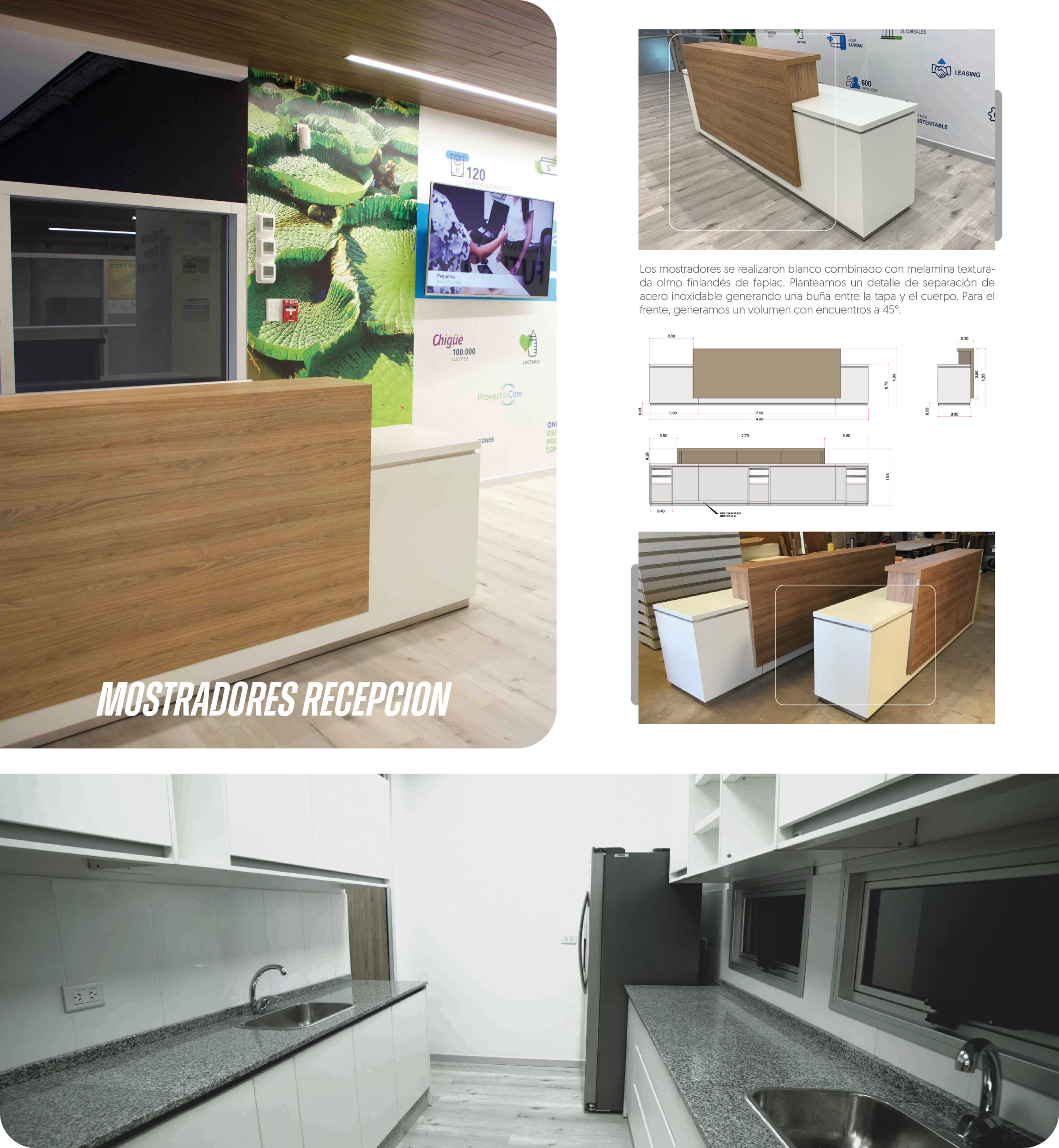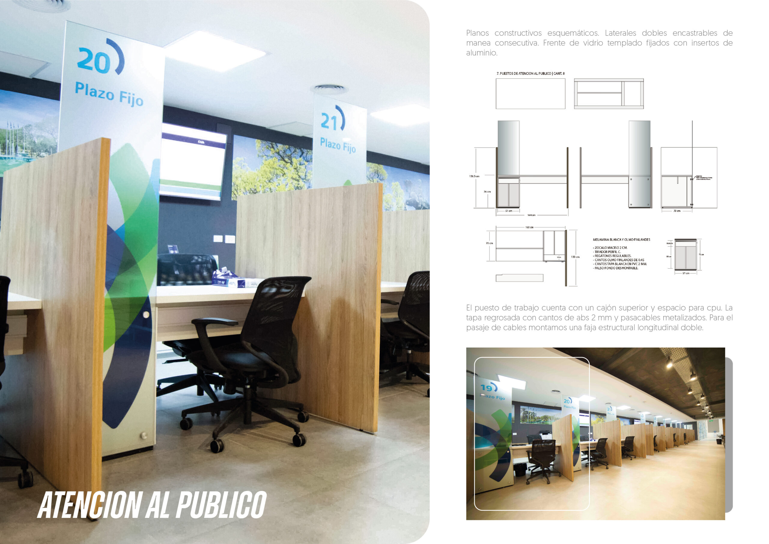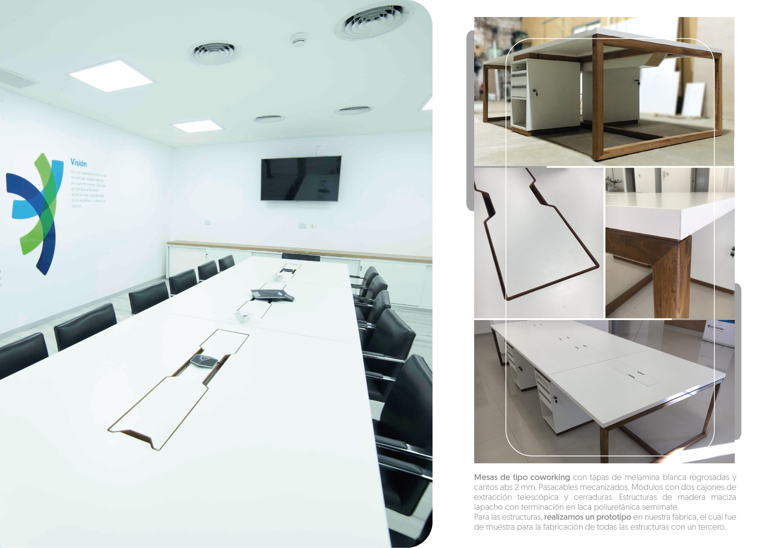 Equipamientos para espacios de trabajo. Escritorios estándar y gerenciales, muebles de guardado bajo y alto, mostradores de recepción, mesas de reunión y coworking, loockers, puestos de atención, revestimientos de paredes, adaptaciones especiales, etc.
